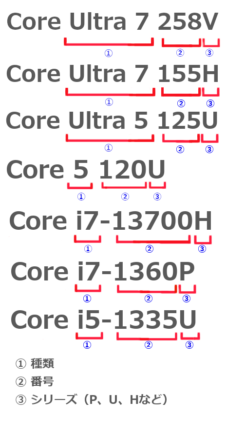 型番から分かる世代は次の通り。新しい世代のほうが性能(とお値段)が高い。